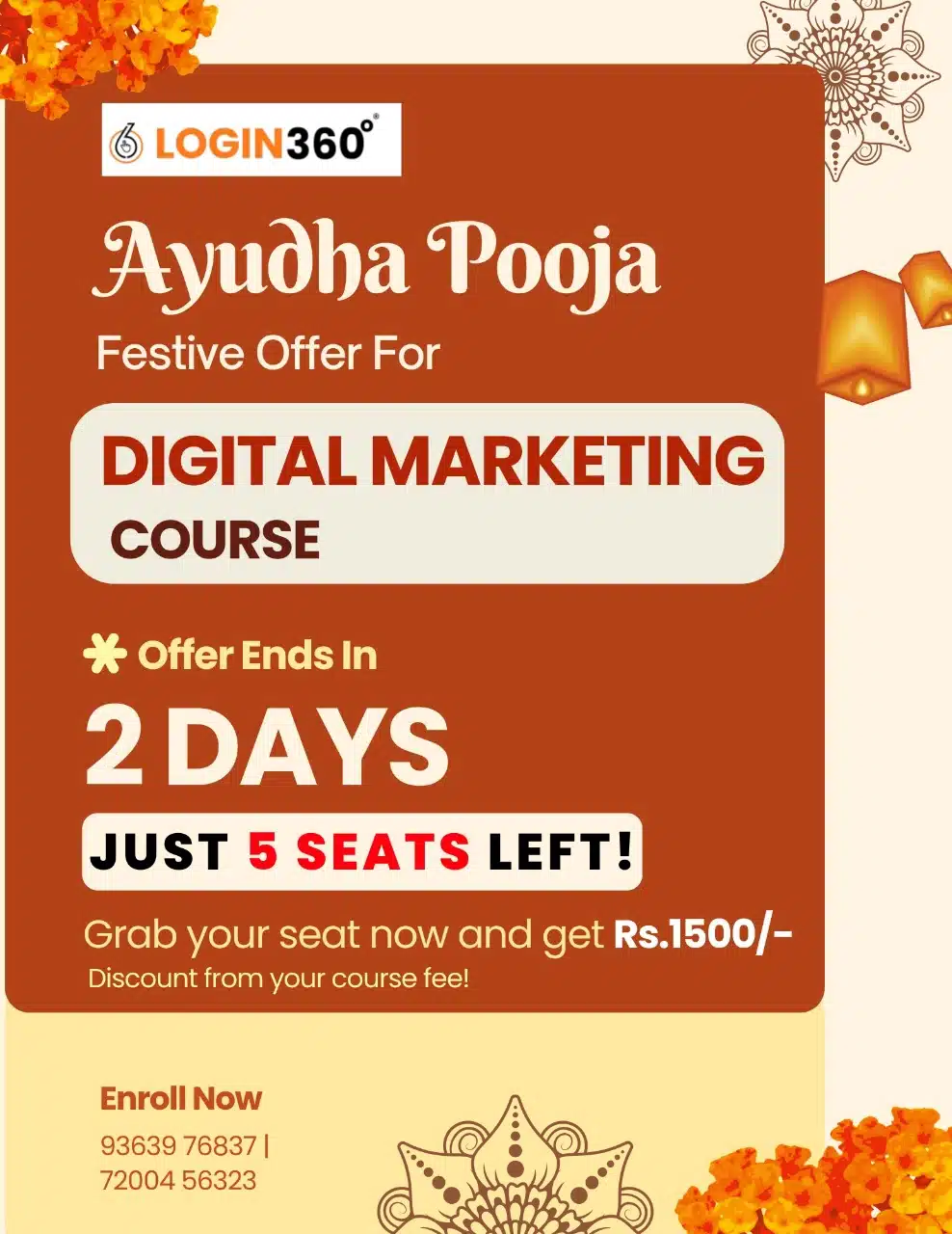 At Login360, the Digital Marketing in Coimbatore program offers two options: the Individual Course lasts for 1.5 months, while the Advanced Course spans 3 months.